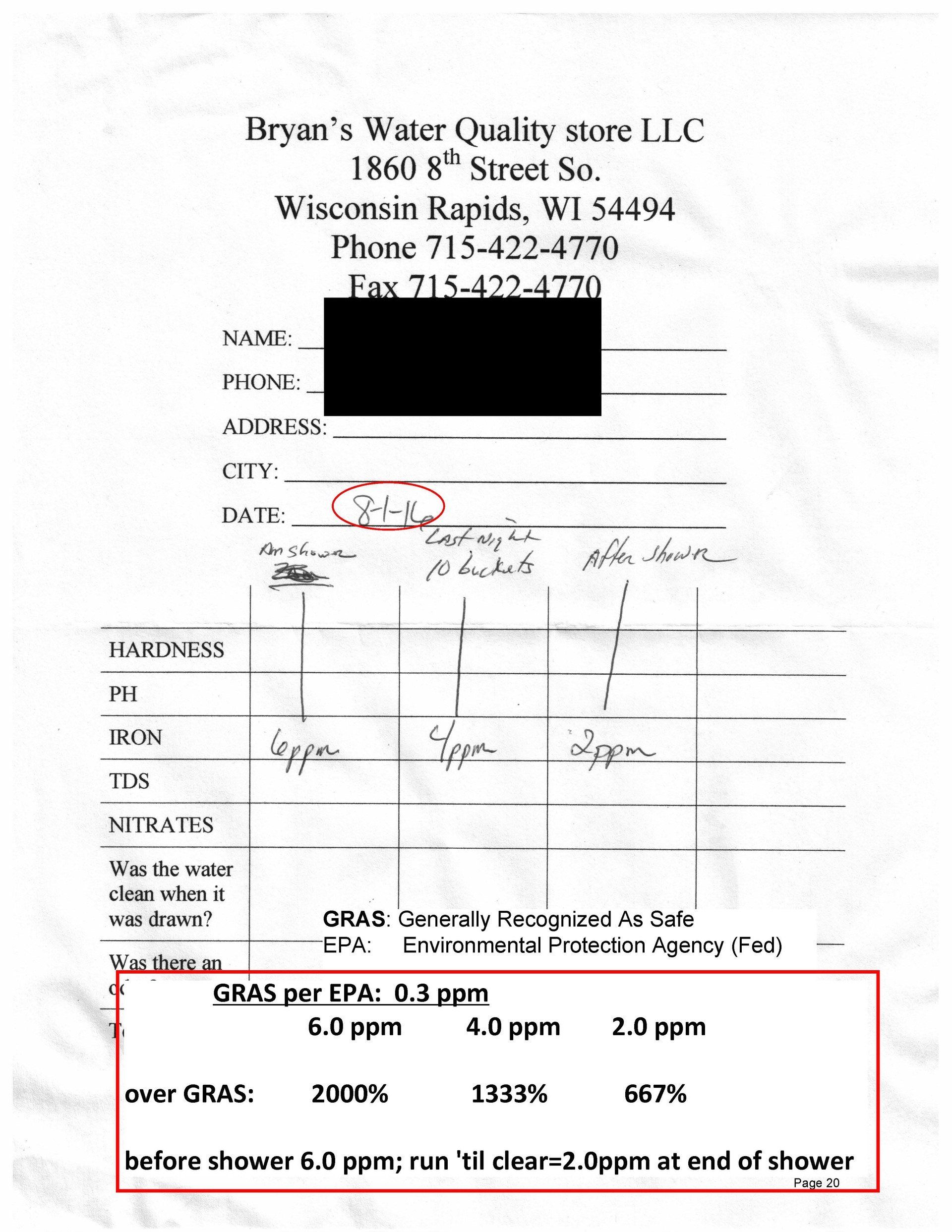 Instead, to ensure an impartial test result, I took samples of the water to a 3rd party for simple iron quantity test.